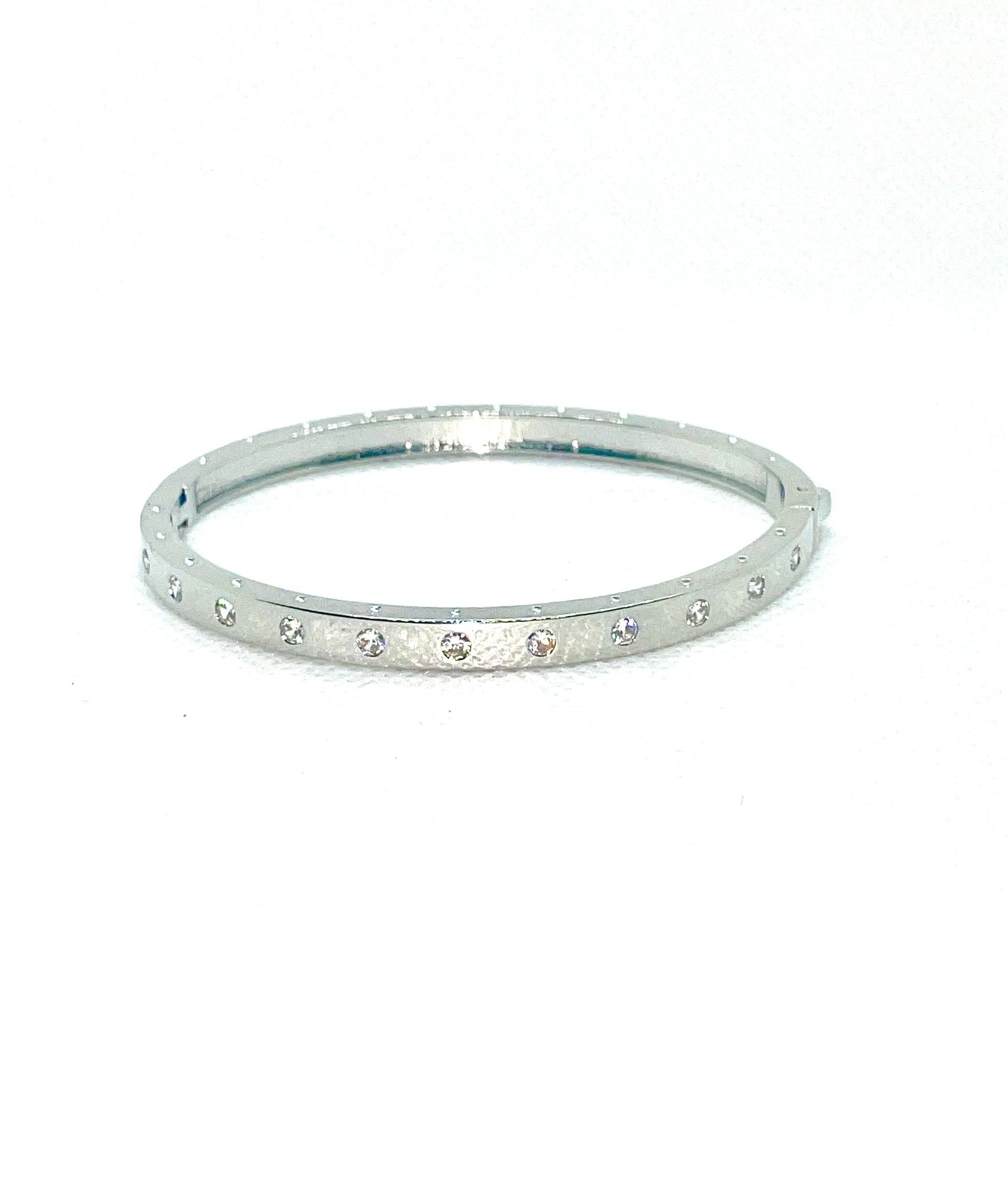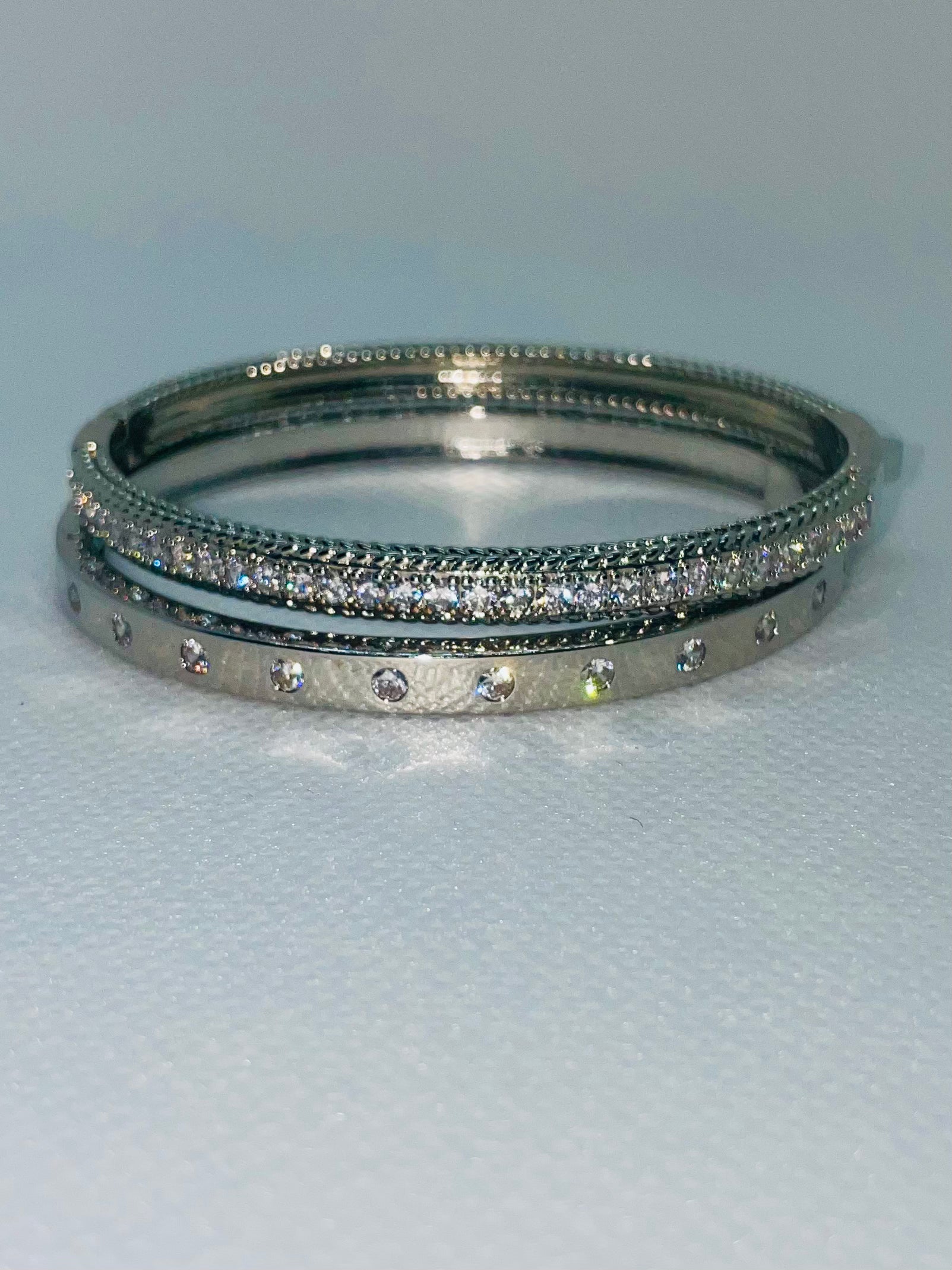 Silver or Gold Diamond Bangle, Snaps on back, paired with Aria's diamond bangle.